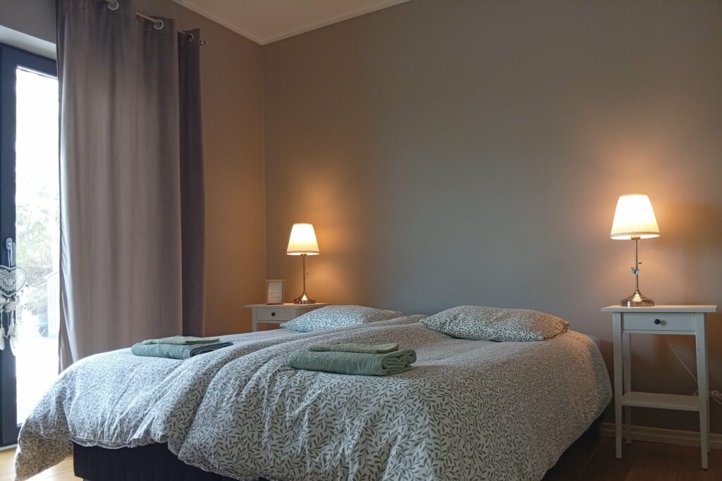 Täisvarustuses kahekorruseline maja, mis pakub maksimaalset mugavust kogu seltskonnale. Majas on 4 magamistuba, millest 3 on allkorrusel ja 1 teisel korrusel. Allkorrusel on lisavõimalus magamiseks suurel diivanil. Köök kohvimasinaga, avar elutuba televiisoriga ning vannituba mõnusate rätikute ja pesuvahenditega. Suur aed laste mänguväljaku ja batuudiga ning terrass mugava mööbliga.